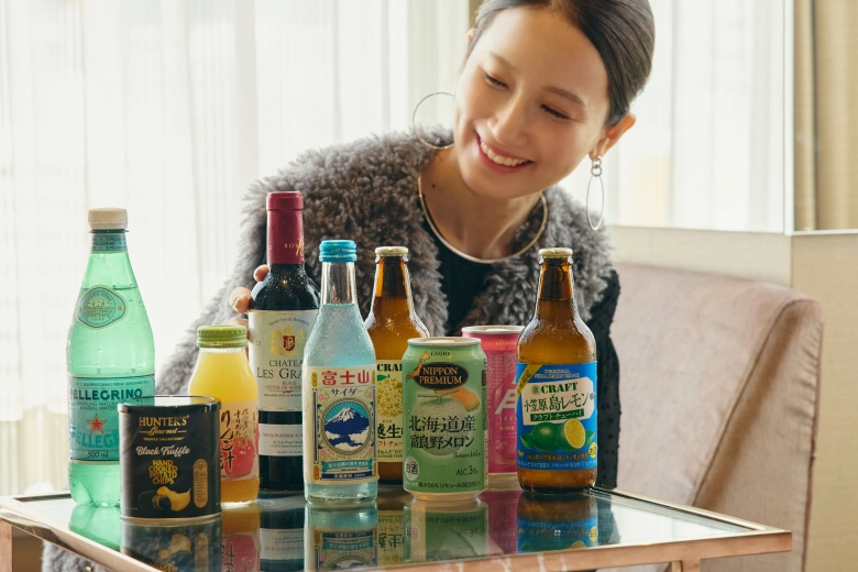 お酒のラインナップも、ワインやビール、地方の名産を使ったサワーなど、充実。わざわざ外に出なくてもお部屋で飲み会ができるのも、贅沢なホテルステイならでは◎