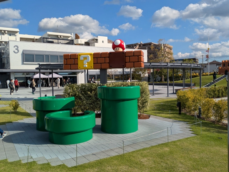 入り口ゲートを通るとすぐにマリオの土管が現れてテンションが上がります!この土管はフォトスポットになっていて、スタッフの方が写真を撮ってくれました。