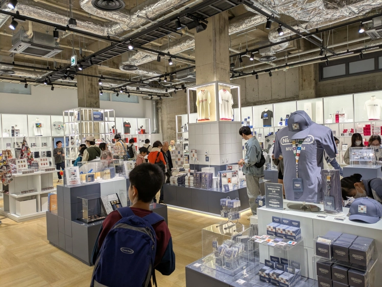 ショップにはTシャツ、キーホルダー、マグカップなど見ているだけでも楽しいグッズがたくさんあり、コントローラーのビッグクッションも人気のようでした。