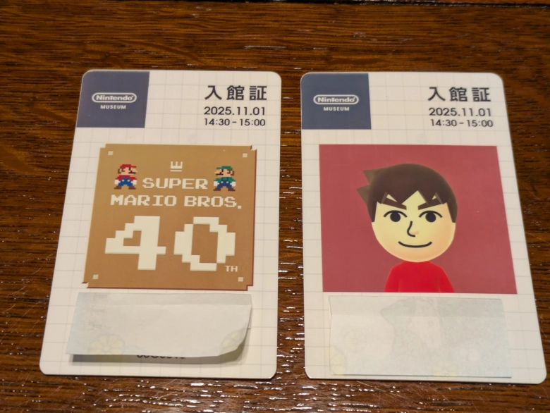 入館証は今はスーパーマリオ40周年特別デザインになっていて、事前に設定しておくとMiiデザインに変更できますよ。