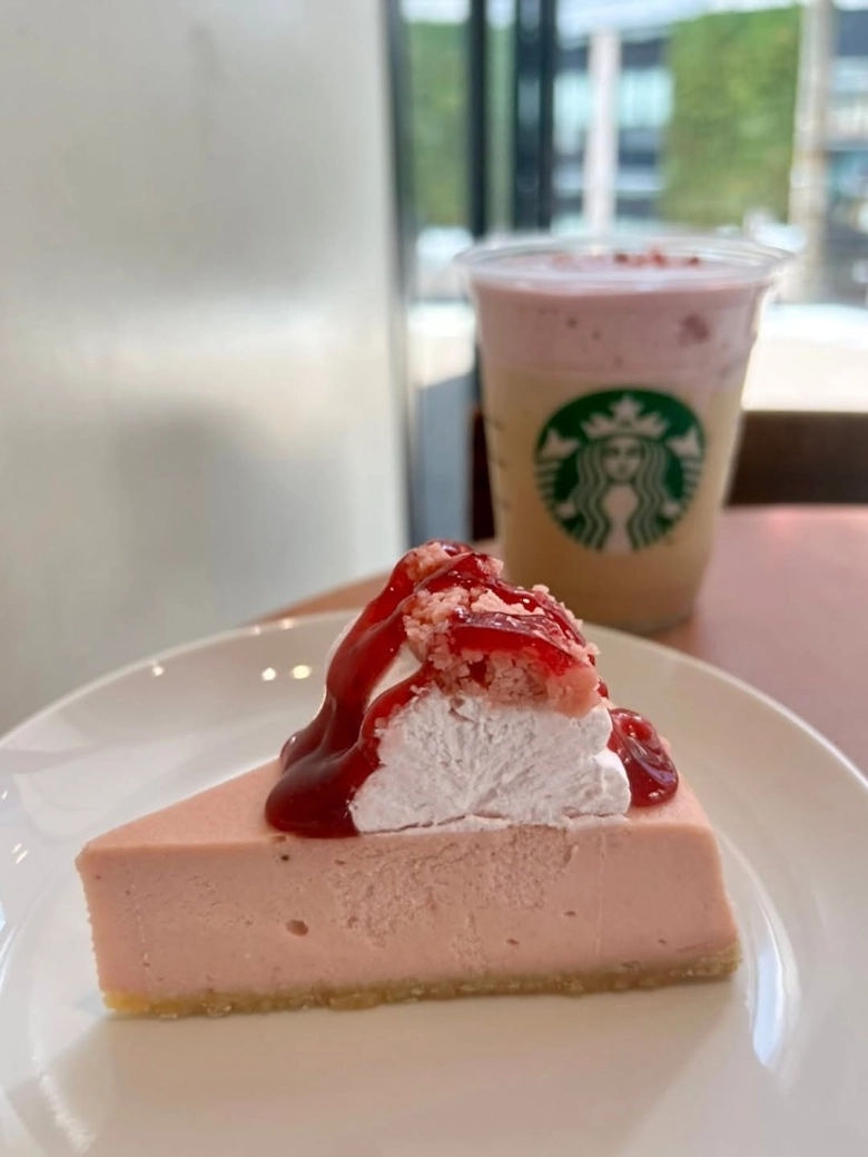 フードメニューも華やか!ピンクでキュートなストロベリーチーズケーキ♡