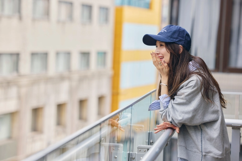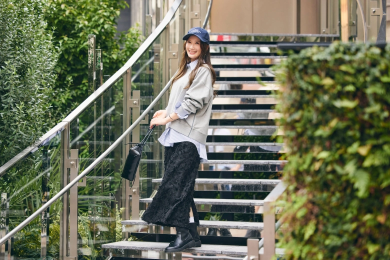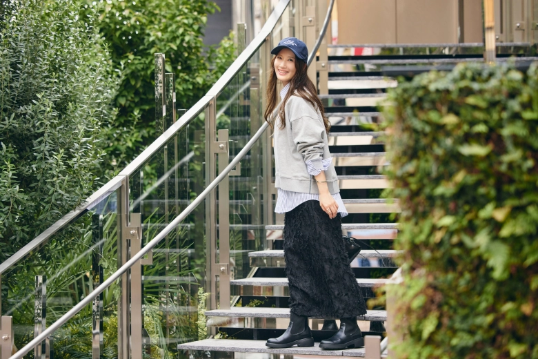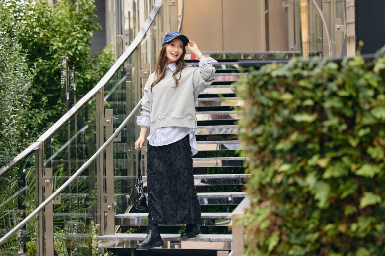 「普段はどちらかというとキレイめなスタイルが多いと思います。今回、キャップやお団子といったカジュアルな小物やヘアスタイルでのアレンジが新鮮でした。『キャップは似合わない』と思って避けがちだったので…。でも、今回のスタイルは自分でもお気に入り!普段も小物でのアレンジに挑戦してみようかなと思いました。家族にも写真を見せたところ『良いじゃん♪』と好評でした♡」