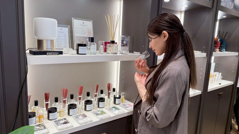 ワークショップでは、店内に並ぶ香りアイテムからお気に入りを選び、自分だけのお香をつくることができるんです。今回かえでさんは、ESTEBANのクラシックラインから香りを選ぶことに。