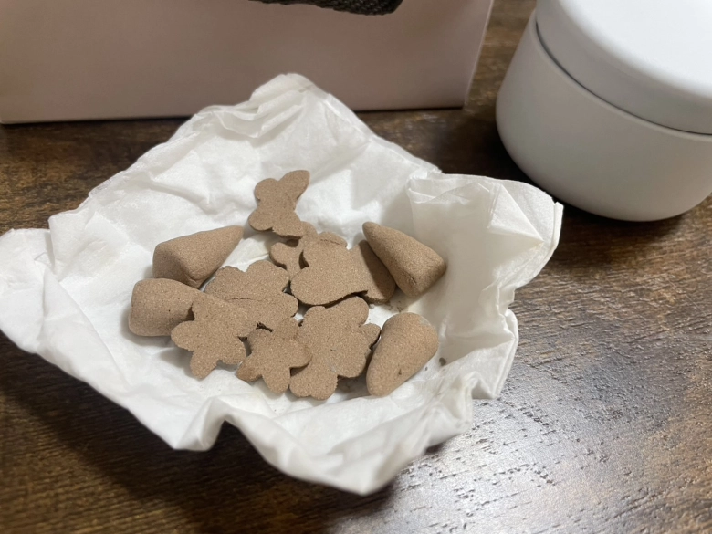 成形したお香がこちら! 最後に容器に詰めてもらえるので、自宅で容器から出し、風通しの良い場所で1週間ほど自然乾燥させれば出来上がりです♪