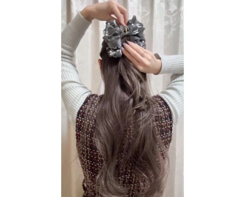 ⑦ ヘアクリップで留めて完成