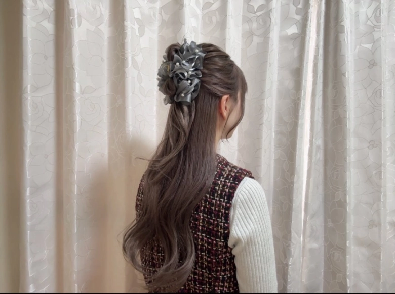 - ヘアクリップで留めて完成