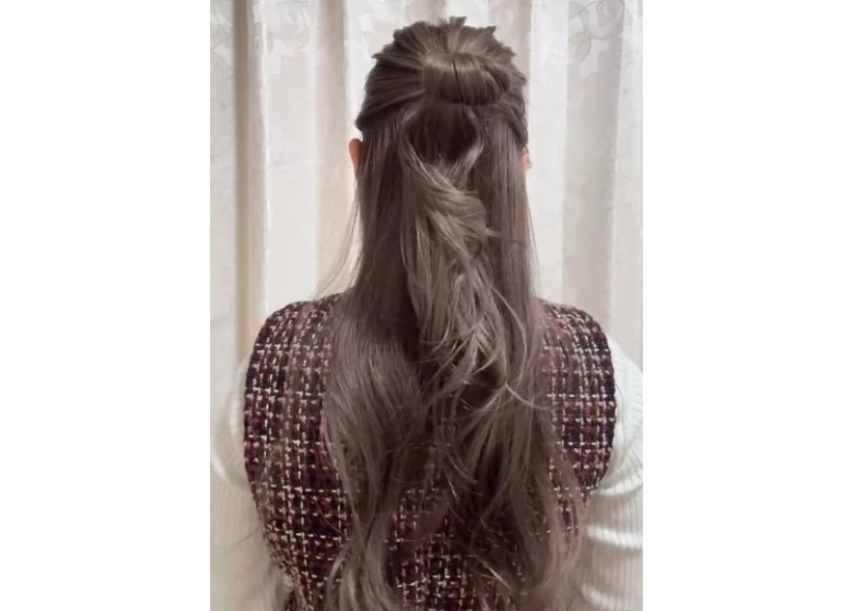 - 耳上の位置でハーフアップ