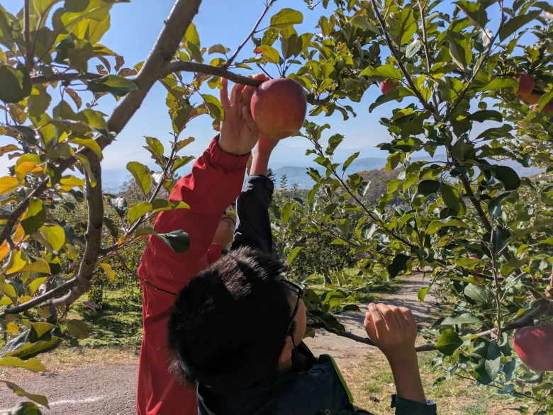長野県は出荷量が全国2位のリンゴの名産地。リンゴ狩りができる施設もたくさんあります。私たちが行ったのは長野県小諸市(こもろし)にある松井農園です。上信越自動車道の小諸ICから約10分の所にあります。