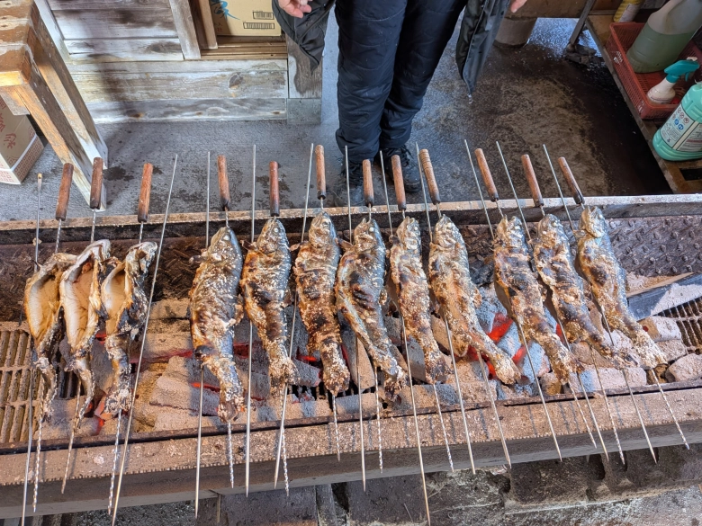 料金は一竿30分で3,000円で、釣れなくても3匹の保障つきです。エサ代は300円。その場で焼いてもらうのに1匹あたり500円がかかります。今回私たち家族は、3匹の焼き代込みで4,800円でした。