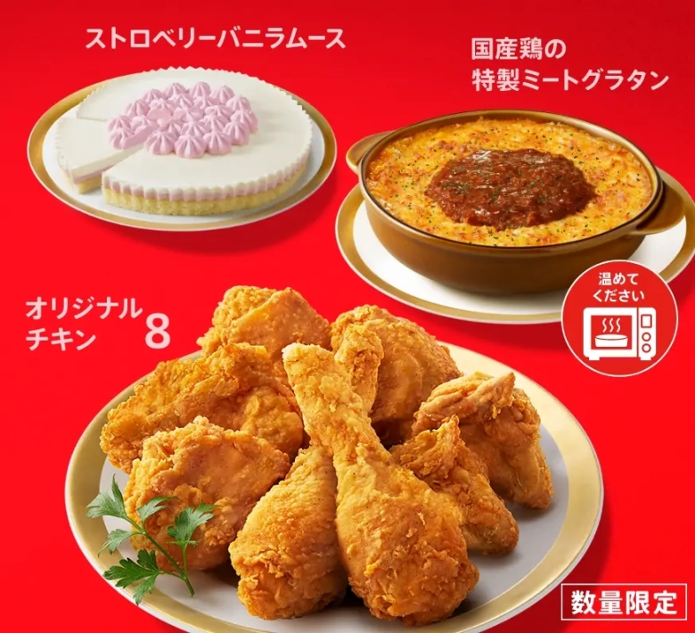 セット内容:オリジナルチキン8ピース、国産鶏の特製ミートグラタン、ストロベリーバニラムース