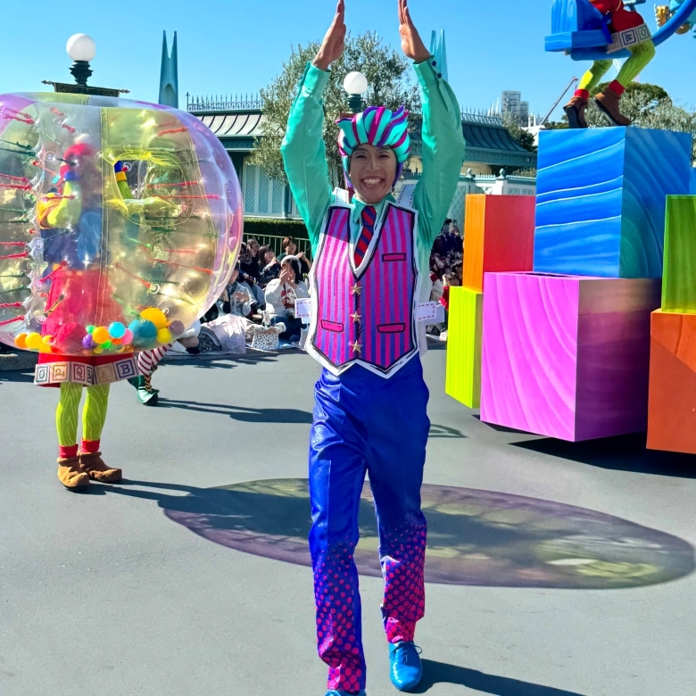キャラクター達のキュートな様子に、peggyさんと終始大興奮。さらに、個人的にパレードをさらに盛り上げるポイントだと思ったのが、ダンサーさん達の素敵な笑顔です!表情豊かなファンサービスに思わずこちらもニッコリ。見てください、この素晴らしい笑顔♪
