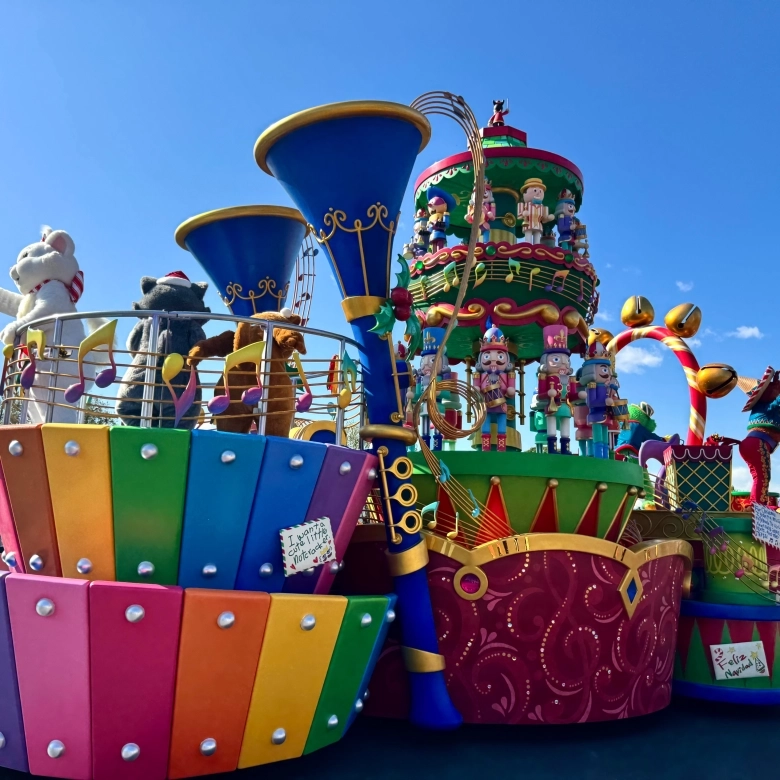 2015年から10年間開催されていた大人気クリスマスパレード『ディズニー・クリスマス・ストーリーズ』が終了し、今年からは新しいパレード『トイズ・ワンダラス・クリスマス』がスタート。私はアトラクションよりショーやパレードが大好きなので、どんなパレードに生まれ変わるのかとずっと楽しみにしていました。今回のテーマは「サンタクロースのおもちゃ工場」で、サンタクロースのトイファクトリーから生み出されたおもちゃたちと、ミッキーマウスをはじめとするディズニーの仲間たちが巨大なフロートに乗って登場します!