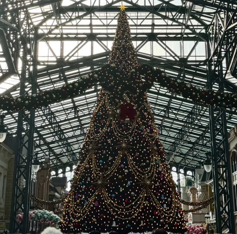 ワールドバザールの中心に約15mの巨大なクリスマスツリーが登場。まだパークに入園したばかりですが、クリスマス一色なパークに早くもワクワクが止まりません。さらに個人的に興奮したのが、クリスマス仕様のバルーンが登場していたこと!