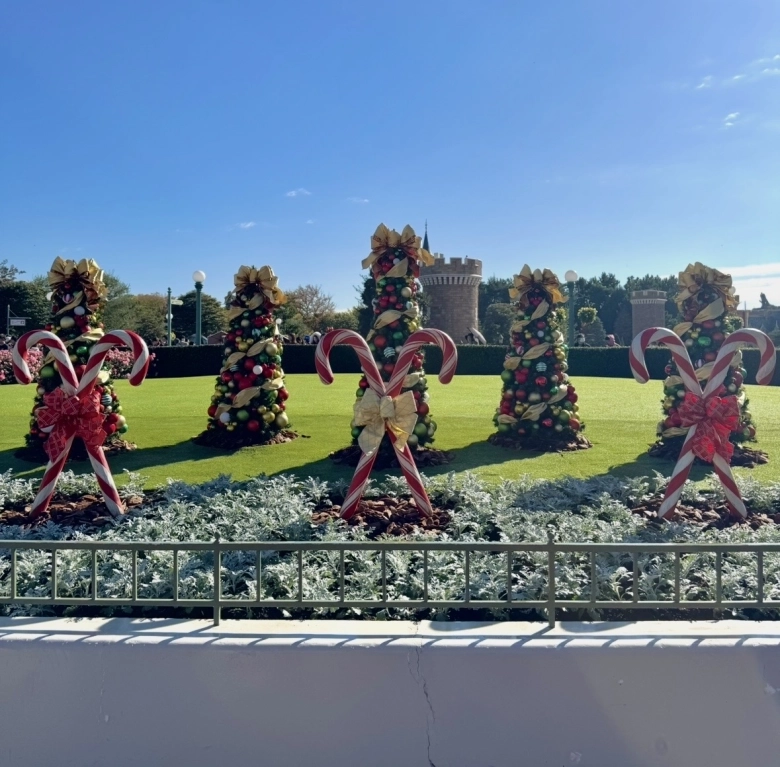 早速パークに入園すると、まずはクリスマス仕様になったキュートなミッキー花壇がお出迎えしてくれます。