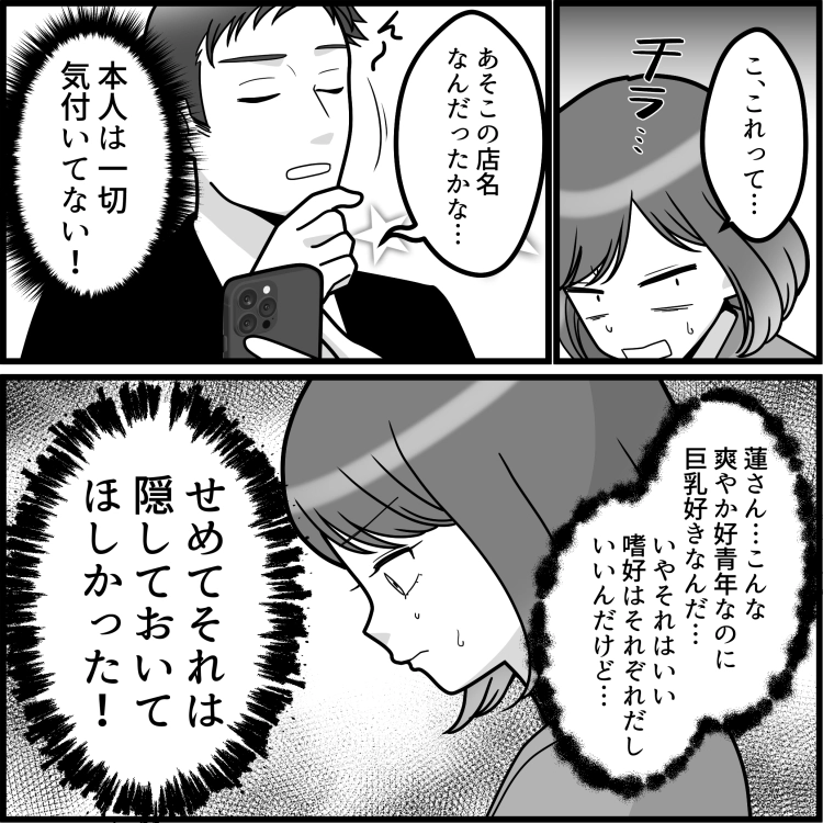 彩香はクリスマスに向けて彼氏を作ろうと一念発起し、マッチングアプリを始めた。早速1人のハイスぺ男性とマッチングし、デートをすることに。実際に会ってみると想像以上にイケメンで、スマートで優しく、欠点のない蓮さんに惹かれていく彩香。話題は蓮さんの趣味であるカフェ巡りの話になり、おすすめカフェを教えてもらうため、2人で蓮さんのスマホ画面をのぞき込む。ところが、画面には予想外のとんでもない写真が映っていた!?