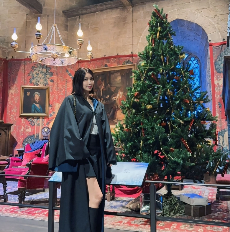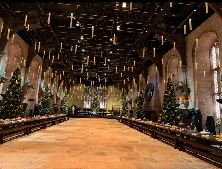 壁のリースや、230個以上のオーナメントが飾られたツリー、ぎっしり並んだギフトボックスなど、どの景色も“ホグワーツの冬”の世界観に包まれていて、ゆっくり歩くだけで気持ちがふわっと明るくなるような場所でした。映画の中で感じていた、あたたかい魔法の世界がそのまま形になったような空間で、大広間はどこを見てもフォトジェニック!夢中で写真を何枚も撮りたくなってしまうような、ツリーもキャンドルも全部がかわいい空間でした。