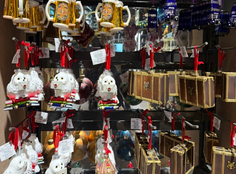 オーナメントも種類が豊富で、本の形やトランク、ヘドウィグが手紙を運んでいるものなど、細部のつくりまでとても丁寧。ツリーに飾るだけで、おうちでも“ハリー・ポッターの世界観”がそのまま楽しめるのが魅力でした。どれも作品の世界にしっかり寄り添っていて、「これ飾ったら冬がもっと楽しくなりそう♪」と、つい選ぶ手が止まらないラインナップで迷ってしまいました!