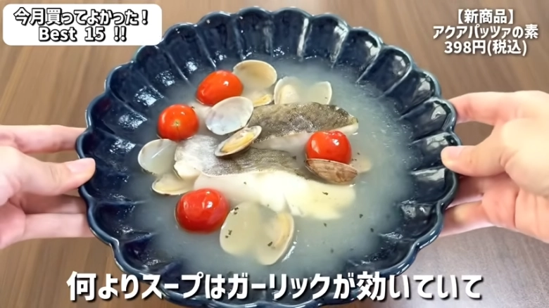 作り方は簡単。白身魚2切れとミニトマト4つ、あさり6個をこちらの袋の中に入れて軽く振り、レンジで600W6分チンします。なんとそのまま2分蒸らせば完成なんです!あさりのだしとガーリックが効いたスープに、ふっくら柔らかな白身魚、旨みが染み込んだトマト…とにかくおいしくて大満足です!「アクアパッツァって、作るのが難しそう」ってイメージをもっているママもいると思いますが、これは電子レンジに入れて放っておくだけで簡単にできちゃう!包丁もフライパンも使わず完成して、しかもおいしいなんてうれしすぎですよね。超おすすめの時短調理商品です♪