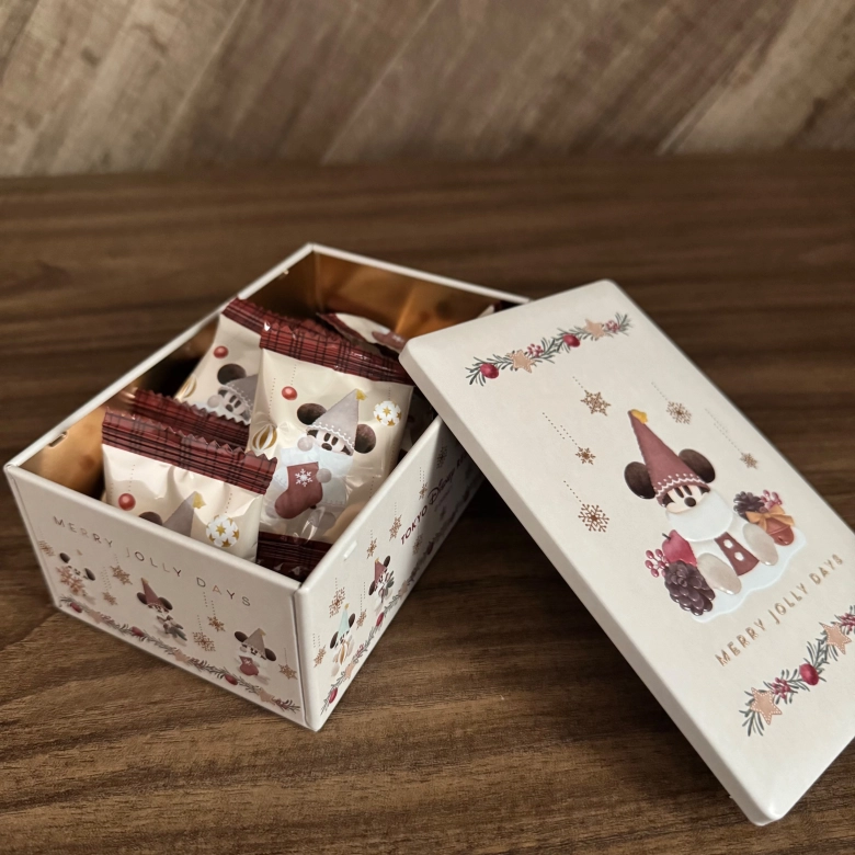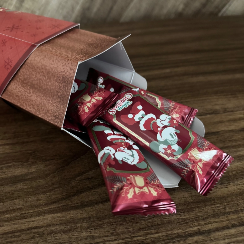 パークの定番土産と言えば、みんな大好きチョコレートクランチ。こちらはクリスマス限定デザインで、味はミルク&ホワイト。32個入りと大容量です!