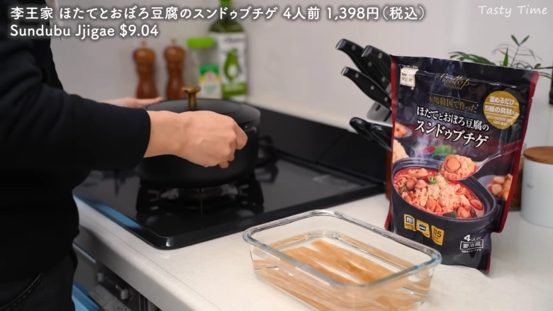 韓国のカンヌンで有名なおぼろ豆腐とほたてが入った本格海鮮チゲが楽しめます!鍋で6~7分温めるだけで完成するタイパ抜群の商品です。
