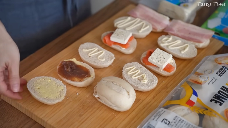 Tasty Timeさんは、忙しい朝にサッと食べられるよう、具をサンドした状態で冷凍!プチパンを半分に切り、マロンペーストとバターを重ねて塗ったり、スモークサーモンとクリームチーズをのせたりと、好みのサンドにアレンジしていましたよ♡