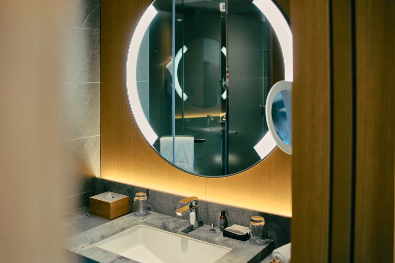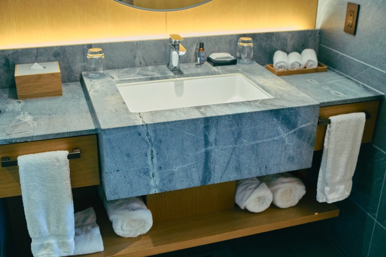 バスルームや洗面台まわりも高級感ある洗練されたデザインです。