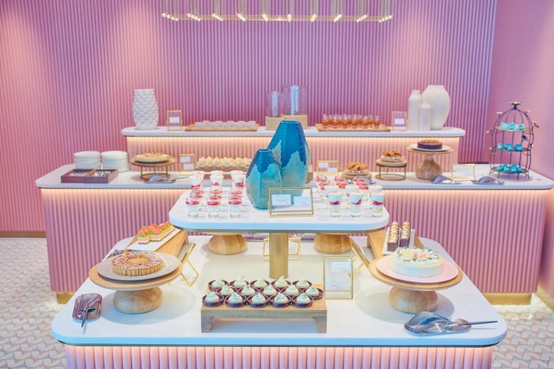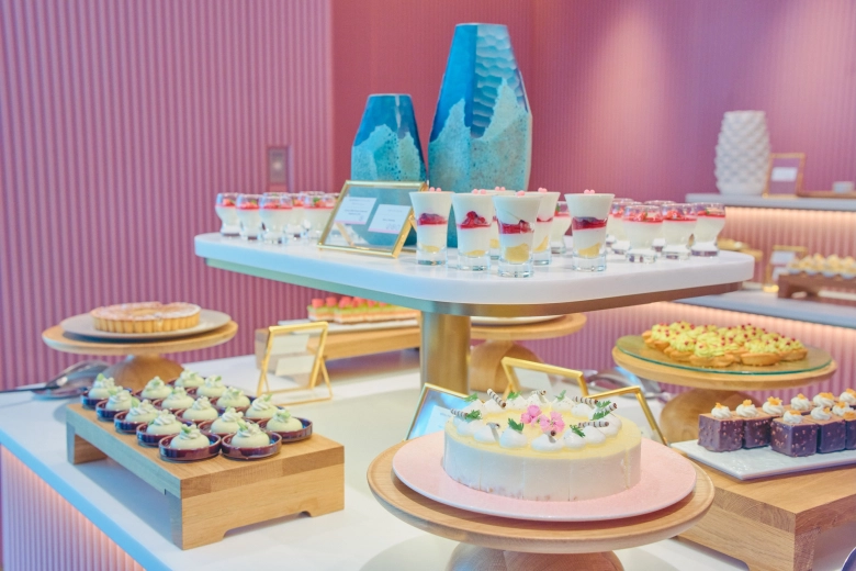 さらにひときわ目をひくのが、スイーツコーナー!「デザートルーム」と名付けられたまるで映画の世界のようなキュートな空間に、ミニサイズのスイーツがたくさん並べられています。全制覇したくなるかわいさです!