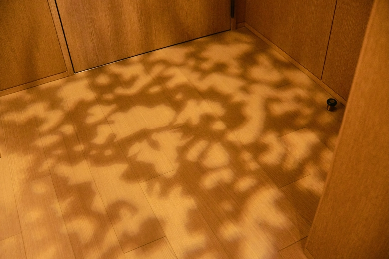 また、お部屋までの廊下も優しい光で落ち着いた雰囲気を演出。床は波打ち際をイメージしたデザインになっています。