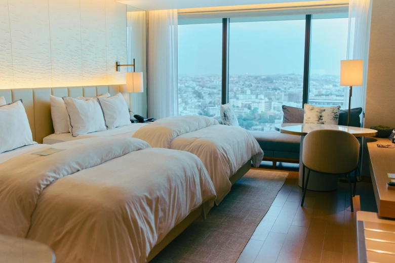 気になるお部屋もチェックしていきましょう!今回、かえでさんが宿泊するのは、デラックスダブルタイプのお部屋。42平米の十分な広さです♡大きな窓もあり、見晴らしも抜群です!
