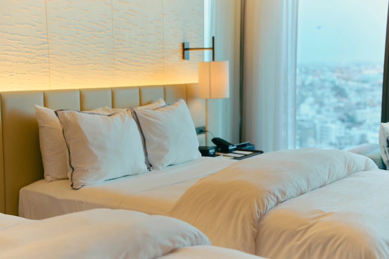 ウェスティンホテル横浜は「ウェルビーイング」をテーマに掲げているので、お部屋には安眠へのこだわりも詰まっています。ウェスティンホテルが独自に開発した「ヘブンリーベッド」を全室に導入。さらにベッドサイドには安眠用のラベンダーバームのご用意も。