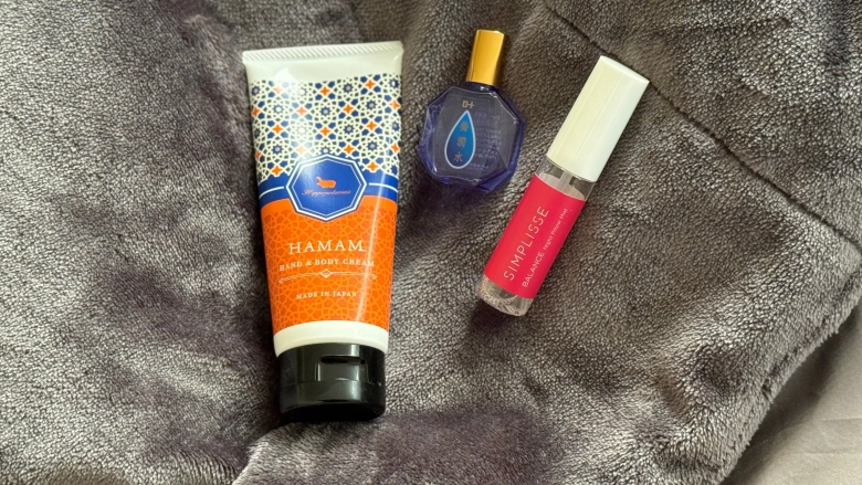 (写真右)ラベンダーのピローミスト(画像のは非売品です)。そもそもピローミストは香りが強くないので、旅先や移動中にシュっとしてみたり、季節や気分に合わせて別の香りを楽しんでみたり…最近は多くのブランドで扱っているのでぜひチェックしてみて。これ、意外と持っておくと便利ですよ。