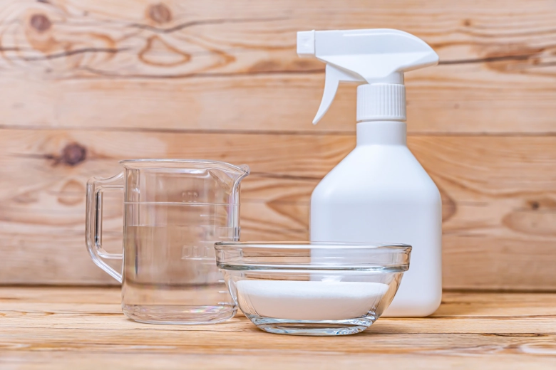 外せない部品の掃除では、スプレータイプの洗剤が活躍します。40度ほどのお湯1Lに重曹を小さじ2.5杯入れた重曹水を、スプレーボトルに入れて使用するのもいいでしょう。
