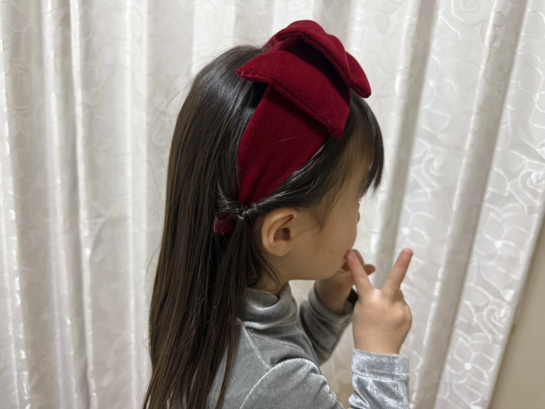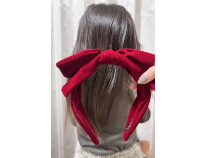 冬のホームパーティーでは、ダウンスタイルで時短にかわいく仕上げるのがポイントです。その上崩れにくかったら言うことなし!大きなリボンに子どももテンションが上がる髪型です♪