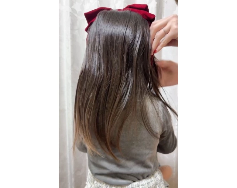 子どもの髪はまだ細くて柔らかいので、扱いやすくなるように下準備します。