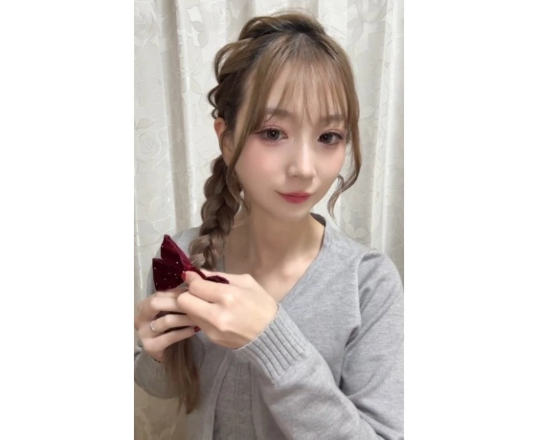 最後にゴムを隠すように、ヘアアクセをつければ完成♡