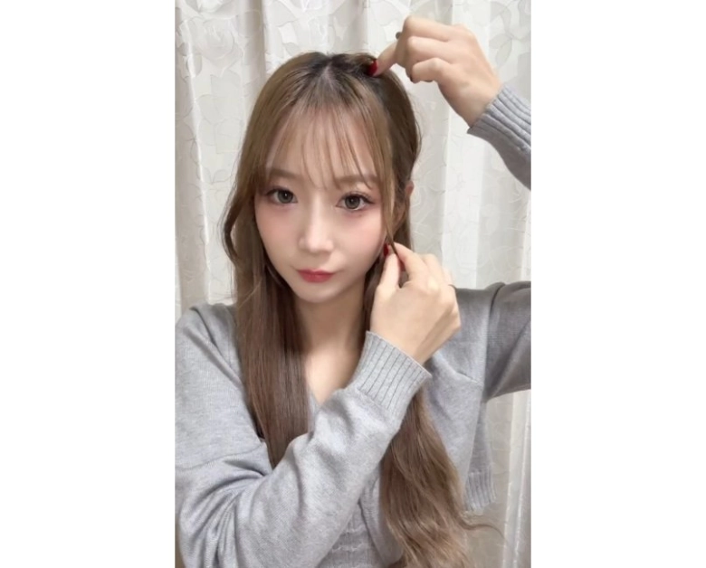 ゴムで結んだら耳の後ろに毛束ごとかけてくださいね。