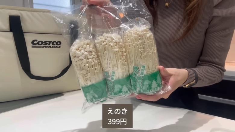 株が大きく立派な、コストコのえのき。3パック入りの大容量です。