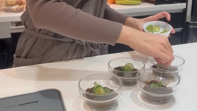 器に盛ってきゅうりなどをトッピングすれば、あっという間にさっぱりとした副菜のできあがりです。