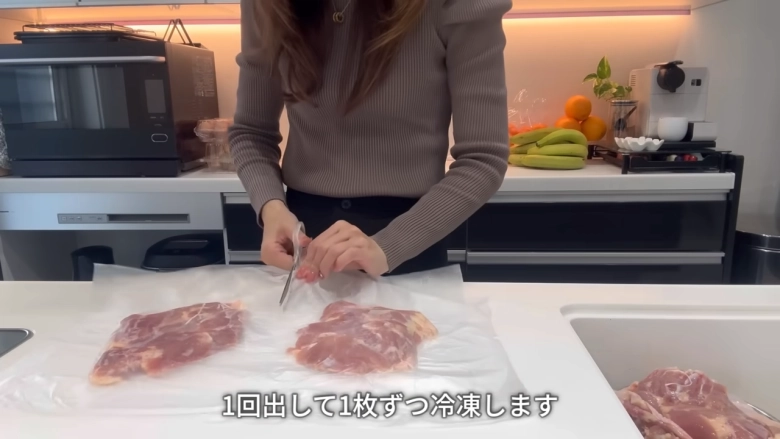 真空パックになっているので、そのまま冷凍保存も可能です。しかし、パックごとに入っている枚数が異なることから、ayaさんは1回出して1枚ずつ冷凍しているそう。食べやすいサイズにカットして、下味をつけてから冷凍するとなお便利♡そのまま加熱するだけで時短でおいしい料理ができます。