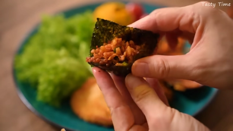 そのまま食べる以外に、炒飯やキンパ、スープといったさまざまな料理に加えるのもおすすめ♪タコチャンジャ炒飯を韓国のりで巻いて食べると、ごま油の風味が加わり絶品です!ひとつあると何かと使える便利な一品ですよ♪