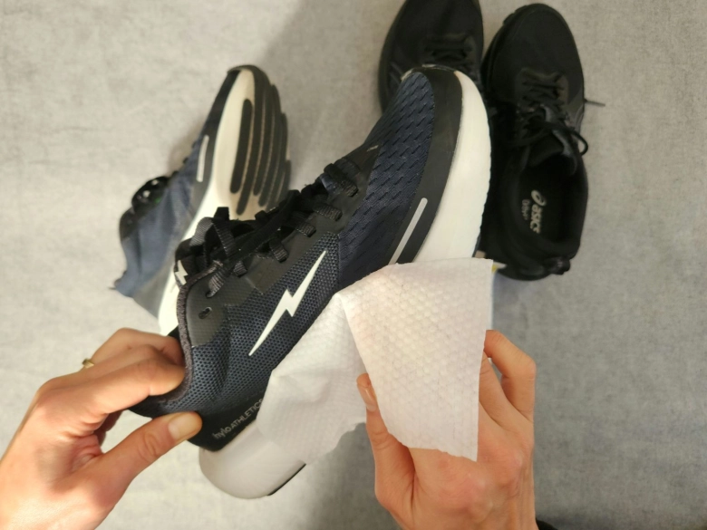 ランニング後は砂やほこりで汚れていることも多いので、その場でサッと綺麗にできるシートタイプのクリーナーは重宝しています。公園で遊んだ後の子どものシューズはもれなく砂だらけですよね(笑)。そのあと出掛ける予定があるという場合にはカバンに忍ばせておけば安心です。