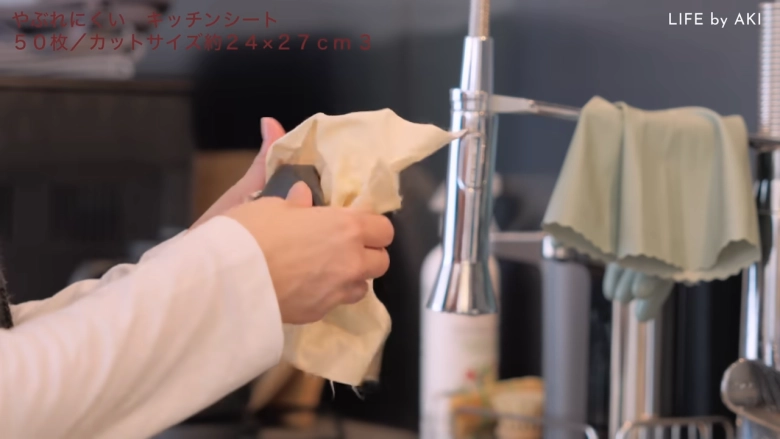 水に濡らしても破れにくく、野菜の水切りから食器拭き、シンク周りの拭き掃除まで大活躍!使い捨てで清潔を保て、気づいたときにサッと使えるので、台拭きとして使えば毎日のキッチンリセットがグッと楽になります♪