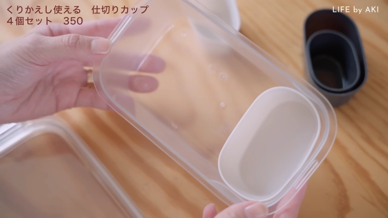 深さがあり、汁気の多いおかずを入れても安心。楕円形なので、お弁当箱にフィットしやすいのもうれしいポイントです。akiさんが愛用している無印良品の「洗いやすい弁当箱」にもシンデレラフィット♡