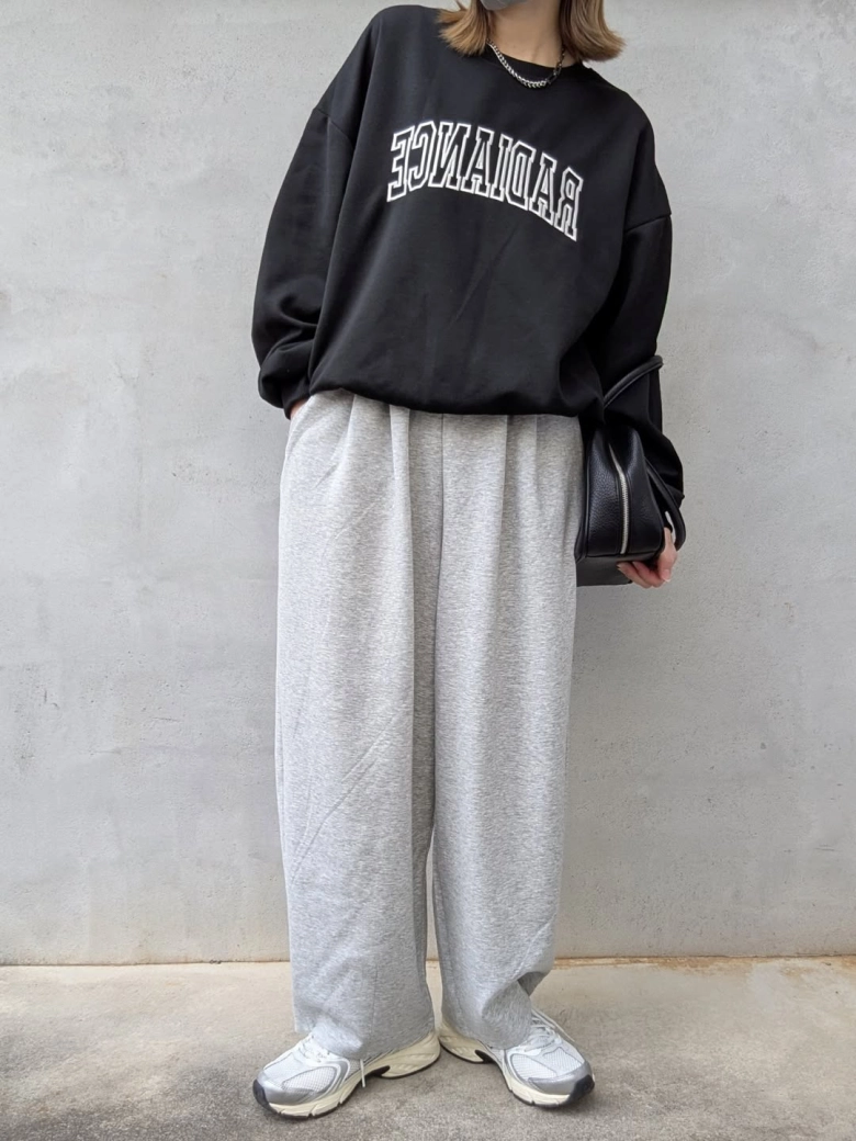 高見え刺繍がポイント!黒スウェットで作る大人のリラックスコーデ