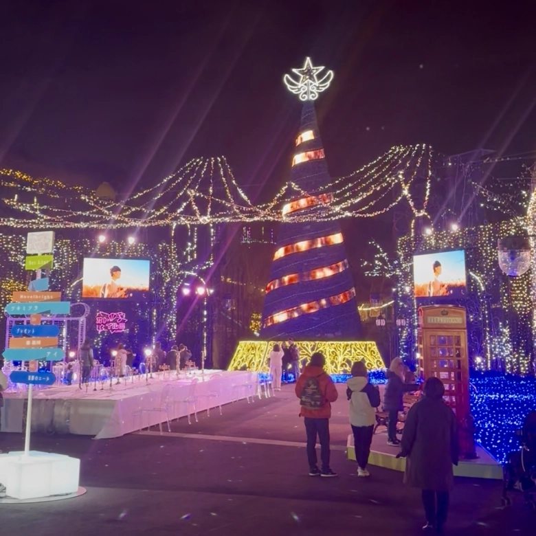 最後は旦那さんの希望で、音楽×映像×イルミネーションの新体験ショー「オトイルミ」へ。有名アーティストとのコラボレーションエリアとなっていて、冬の夜にぴったりなアーティスト5組(Crystal Kay、GRe4N BOYZ、Novelbright、秦 基博、マルシィ)の楽曲によるイルミネーションショーが開催!