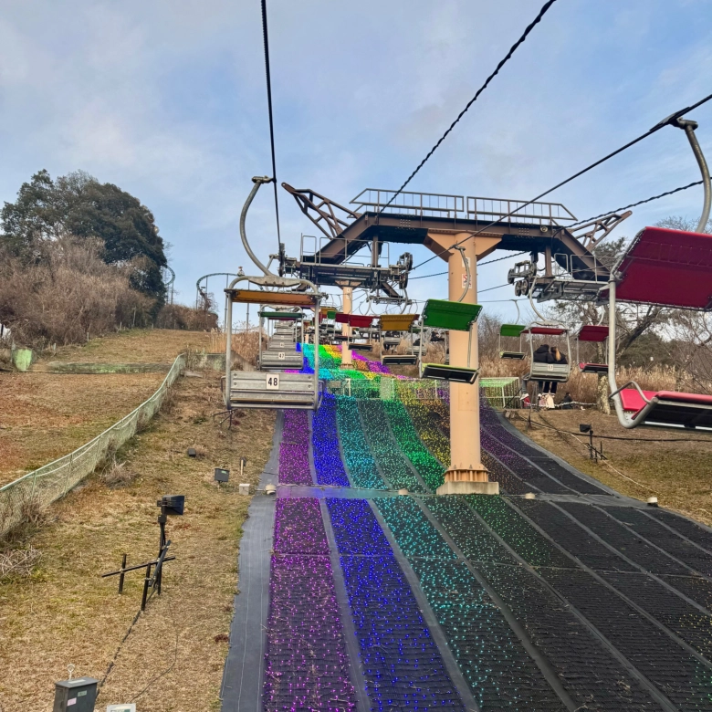 イルミネーションの点灯は16時からですが、先に遊園地を見たり、明るいうちにも園内の装飾を撮りたかったため、全長250mの虹のリフトに乗りイルミネーションエリアへ移動しました♪︎