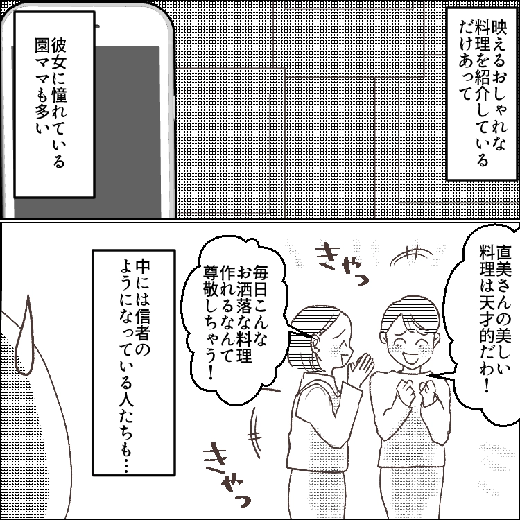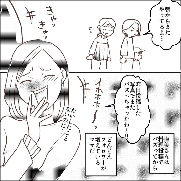 涼子と同じ園に子どもを通わせている直美さんは、インスタグラマーとして日々料理の写真を投稿している。何度も投稿写真がバズってフォロワー数が増えており、彼女に憧れているママ達も多い。しかし、手作り志向が強いようで、涼子たちがスーパーのお惣菜の話をしていると、直美さんにディスられてしまう。それ以降も料理マウントを取ってくる直美さんに対して、涼子はどう対応する!?