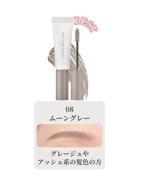 明るめですがくすみ感を含んだカラーで、マットな発色が特徴です。「茶色い髪ならどんな色にも合わせやすい」とSNSで話題となり、眉マスカラ難民だった茶髪さんから多くの支持を得ました。明るい髪色で、合わせる眉マスカラの色に悩んでいる人は、とりあえずこちらを選んでみるのもいいかも。