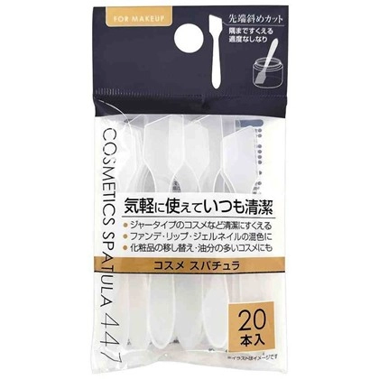 透明のプラスチック製スパチュラで、クリームやバームの他にリップやファンデーションなどマルチに使えます。