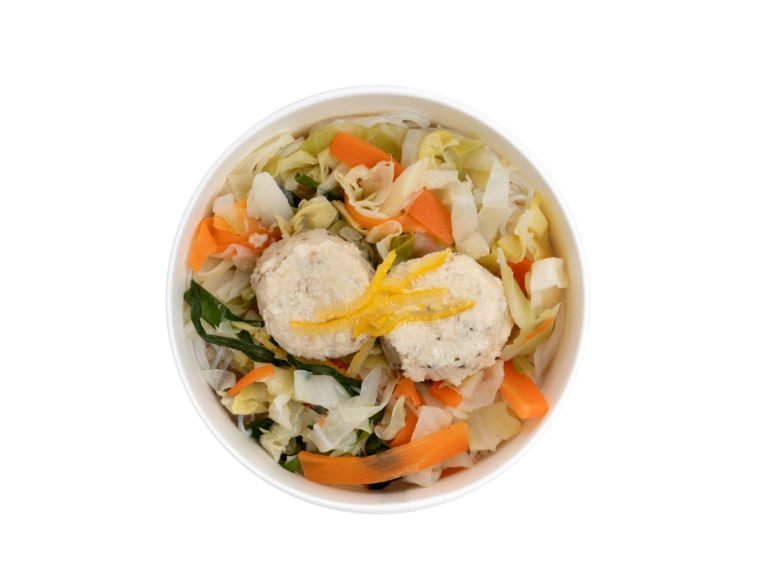 「成城石井自家製 おから鶏団子とキャベツの春雨スープ」(税込647円)は鶏団子が主役の春雨スープです。鶏団子には生姜と大葉をきかせ、おからを入れることで柔らかい食感に。柚子が爽やかに香るスープは冬にぴったり。ちょっと一品足りないな、というときも具沢山スープを添えればごちそうに。